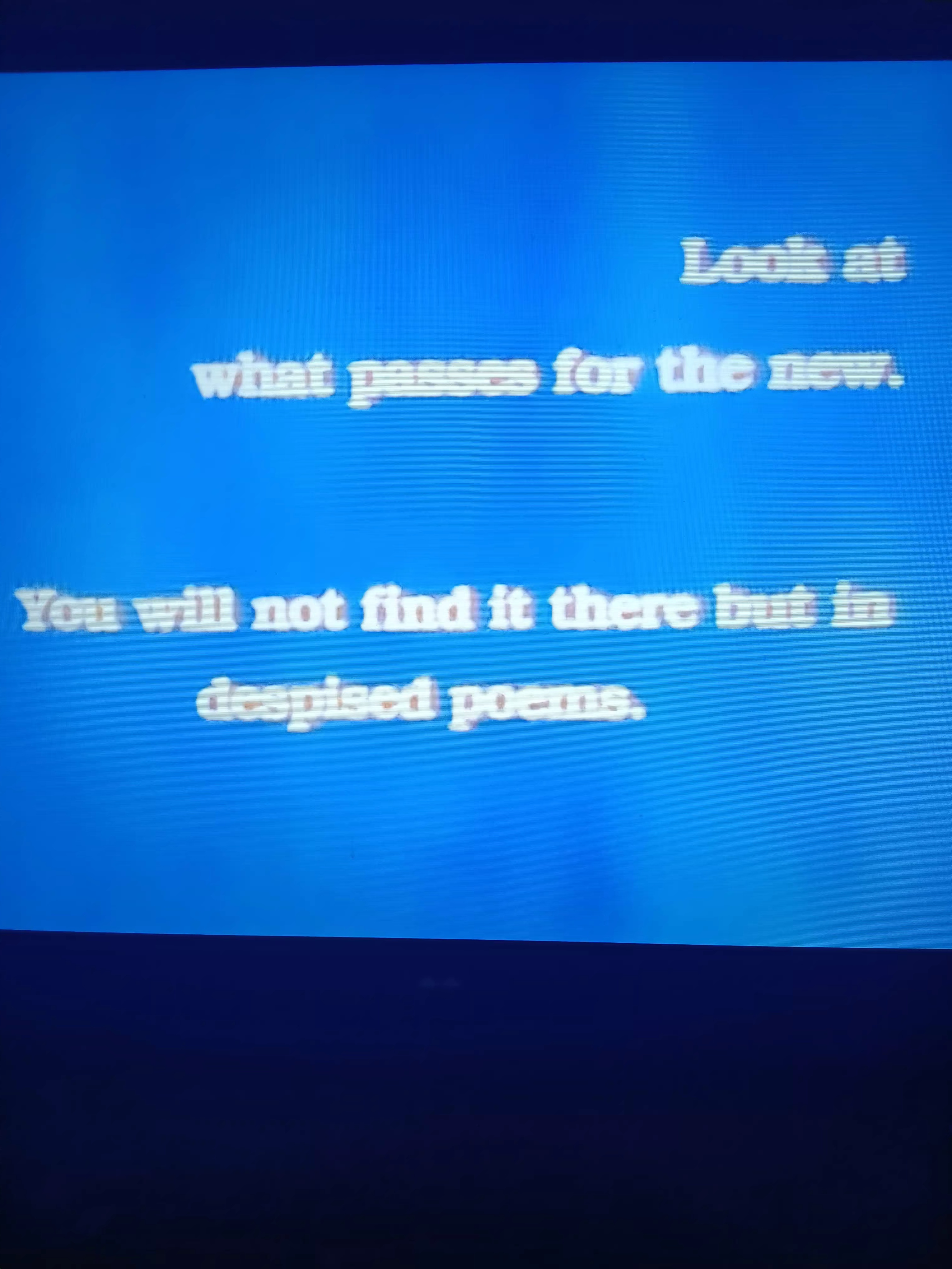 “Look at / what passes for the new. / You will not find it there but in /