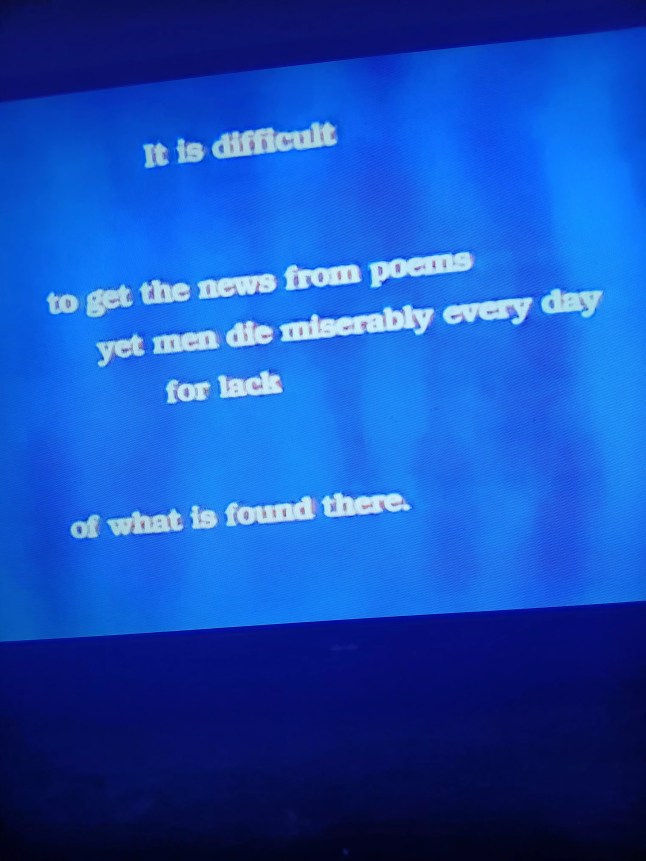“It is difficult / to get the news from poems / yet men die miserably every day / for lack / of what is found there.”
